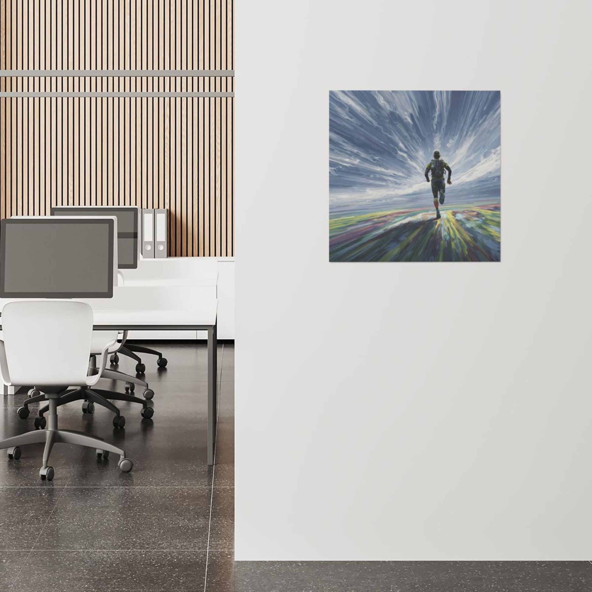 This set of frameless square decorative canvas prints features the theme of “Dream Chaser”. Through artistic brushstrokes, it shows a person running in brilliant light and shadow. The colorful ground blends with the radial sky, conveying the spirit of bravely pursuing dreams and breaking boundaries, injecting vitality and positive energy into the space.
