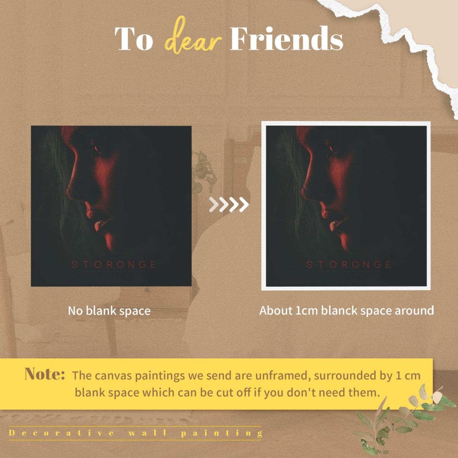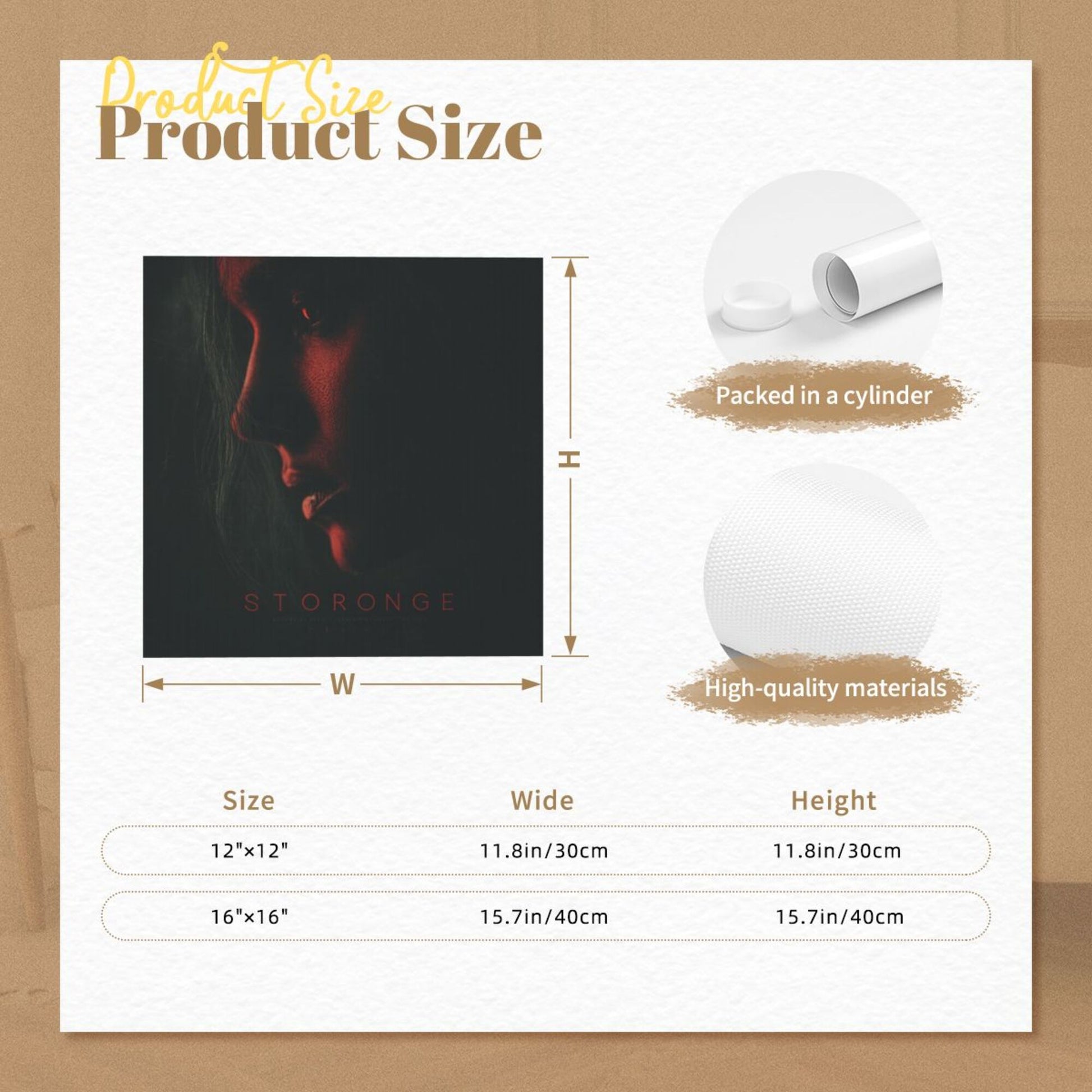 This set of frameless square decorative canvas prints features a mysterious portrait as the core element. The dark - tone background paired with red light and shadow outlines a unique artistic atmosphere, and the word “STORONGE” adds a sense of mysterious narrative. Made of high - quality canvas, it accurately restores the details of the picture. From the texture of the hair to the light and dark layers of the face, everything is clearly presented, as if telling an unknown story.