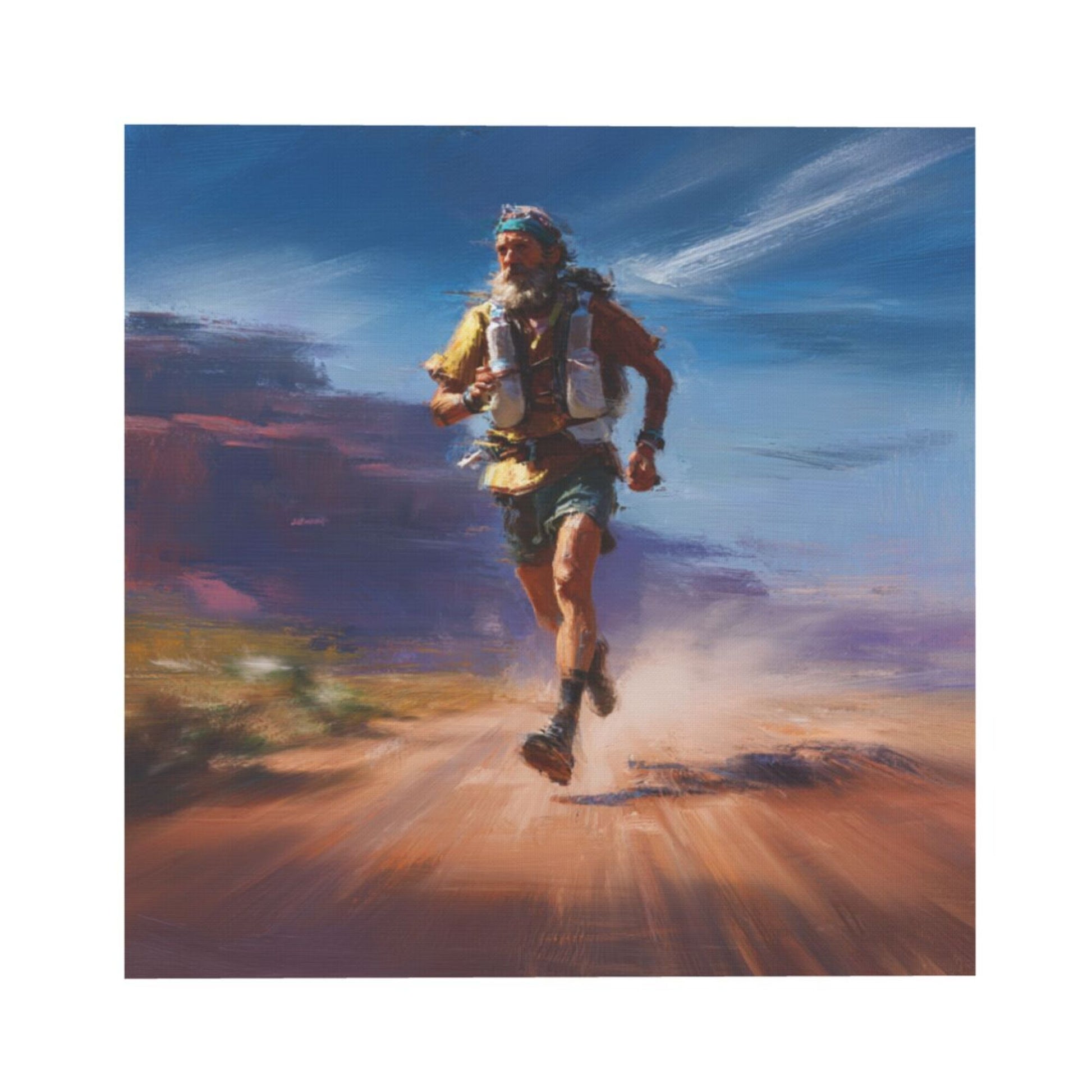 This set of frameless square decorative canvas prints focuses on an outdoor running scene, capturing the vibrant moment of a runner striding in the open world. In the picture, the person is fully equipped, marching forward in a richly colored natural background. The vivid brushstrokes convey the dynamism of sports and the passion for exploring nature, injecting positive energy into the space.